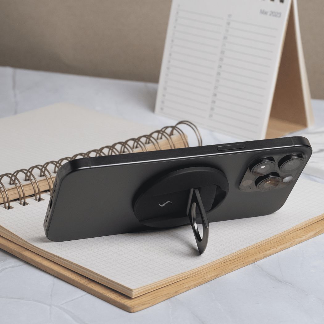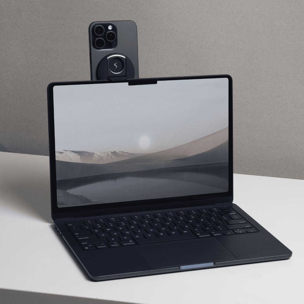 Boost multitasking with the Scapade MagStand — a 360° rotating magnetic iPhone mount made for MacBook users. Perfect for Continuity Camera or side‑screen use, it clips on tool‑free to any MacBook without marks or damage. A strong magnetic grip keeps your iPhone stable, while smooth 360° rotation lets you dial in the ideal angle for streaming, calls, or focus work. Ultra‑compact and travel‑friendly, it’s compatible with MagSafe iPhones (12 and later) and all MacBook Air and Pro models (13", 14", 15", 16"). No setup required — just snap and go.